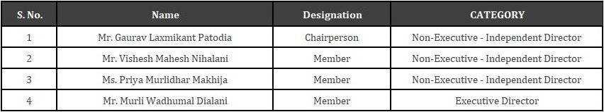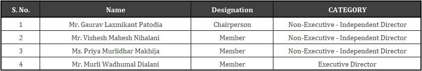- Mr. Murli Wadhumal Dialani – Chairman & Whole-time Director (Executive Director)